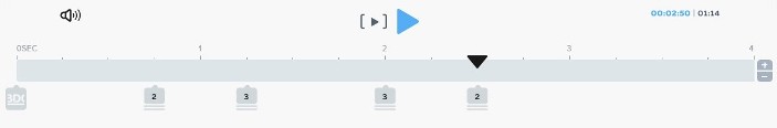 Усі елементи на слайді відображаються на часовій шкалі. Їх можна пересувати, об'єднувати в групи, налаштовувати ефекти. Тривалість слайда регулюється кнопками «+» і «-» праворуч.